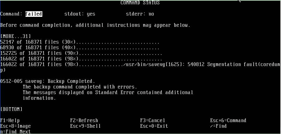 /usr/bin/savevg[1625]: 540812Segmentation fault(coredump)